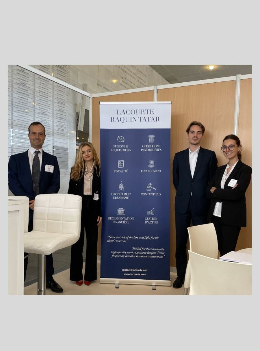Serge Tatar, associé, Cyrille bailly, associé, Damien Grosse, associé, Chloé Goldstein, stagiaire au sein du département immobilier, Joseph Deschamps, collaborateur, et Victoire Leborgne, stagiaire au sein du département M&A, ont eu le plaisir de partager leur passion du droit avec les étudiants d’HEC lors du Forum Juridique et Fiscal organisé le 26 octobre sur le campus de l’école.